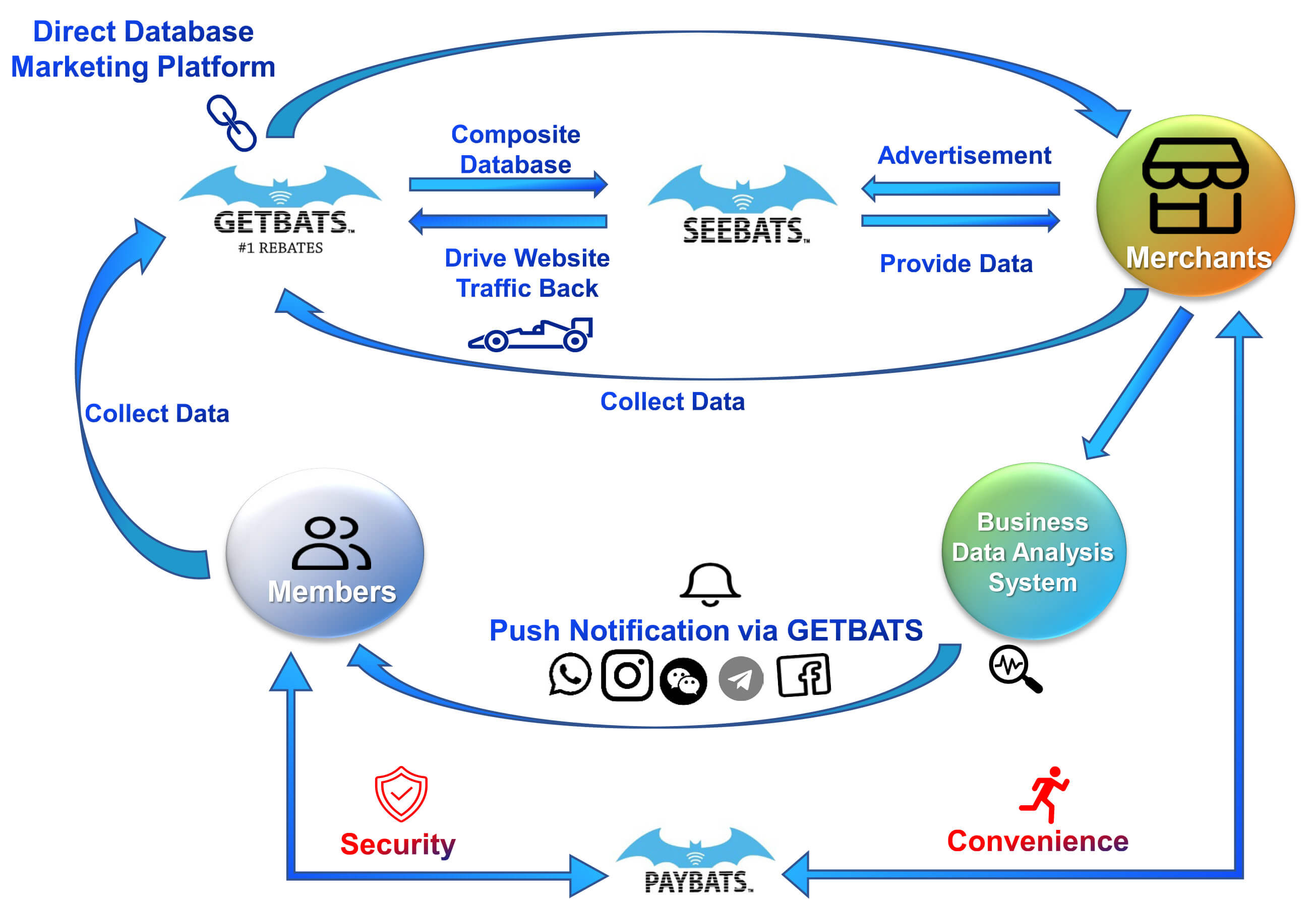 Members may use the GETBATS website, www.getbats.com, or mobile app as their personal shopping portal and earn cash rebates.
